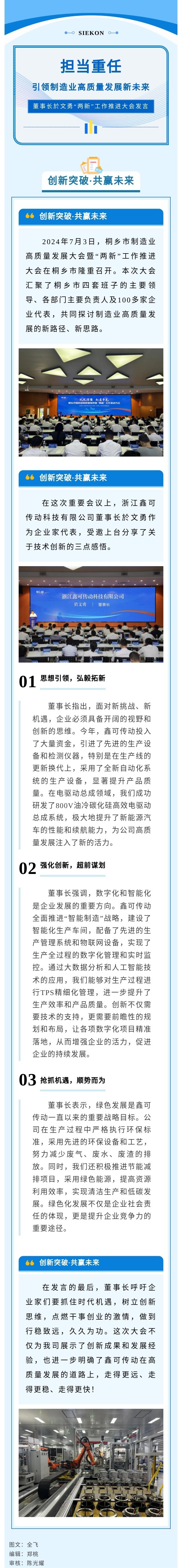 擔當重任|引領制造業(yè)高質量發(fā)展新未來暨董事長於文勇“兩新”工作推進大會發(fā)言 2024-07-11 16:05:13 浙江鑫可傳動科技有限公司 瀏覽次數(shù) 1229 上一條嘉興市委書記陳偉深入鑫可調研,共話企業(yè)發(fā)展新篇章 下一條開展TPS培訓 推動企業(yè)精益管理