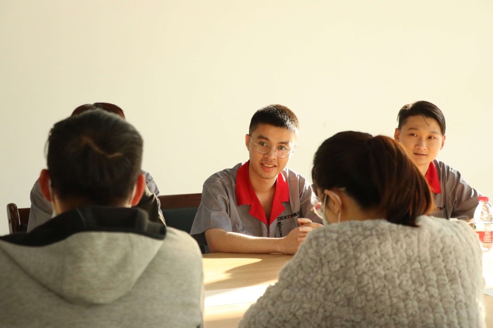 為持續深化校企合作,鑫可傳動科技有限公司在直接引進合作院校人才、為學生提供實習鍛煉機會的同時,還與合作院校保持密切的聯系互動。10月18日下午,云南國土資源職業學院二級學院黨總支副書記陳偉、教學秘書何雨潔、嘉興市大學生社會工作服務中心副主任樊鵬飛來我司看望和慰問實習學生,公司副總經理兼經營管理委員會副主任陳光耀、人事行政副總監徐輝熱情接待了陳副書記一行。